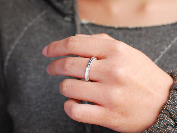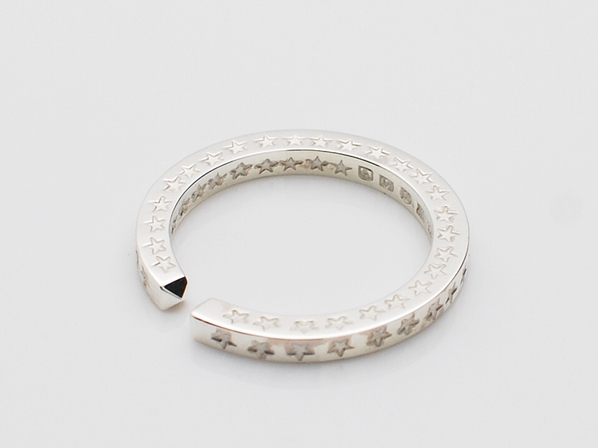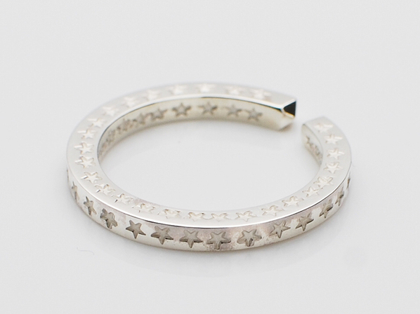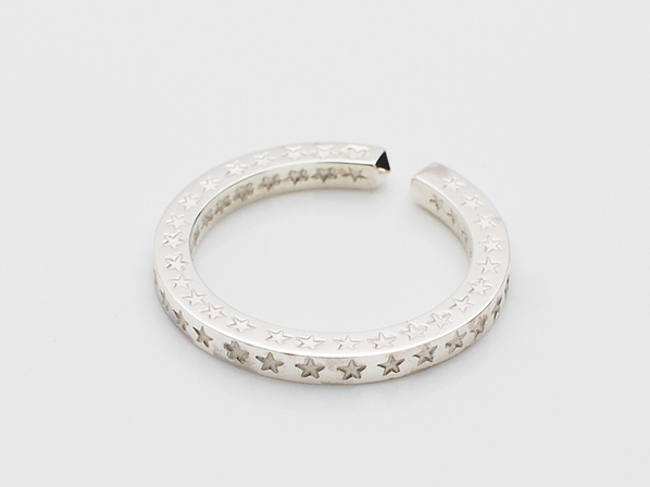 ◆こちらは表と裏そしてサイド、全ての面にスター刻印を手打ちしたフリーサイズのリングで(ベースは11号、15号の2サイズ展開)、あえて燻しを施さずクリーンで新鮮な仕上げでフィニッシュしています。