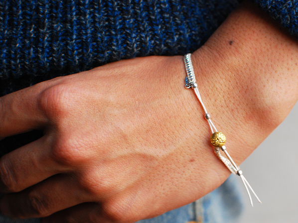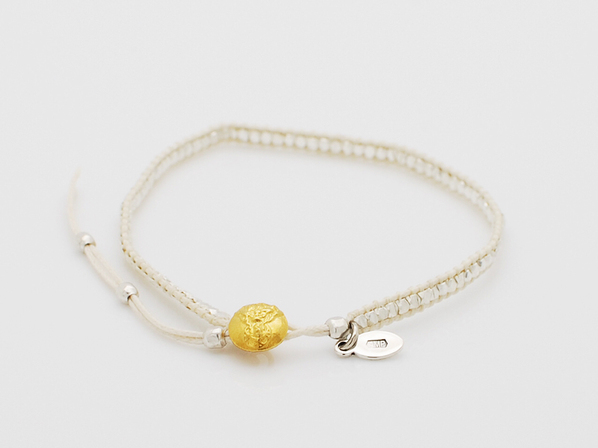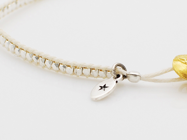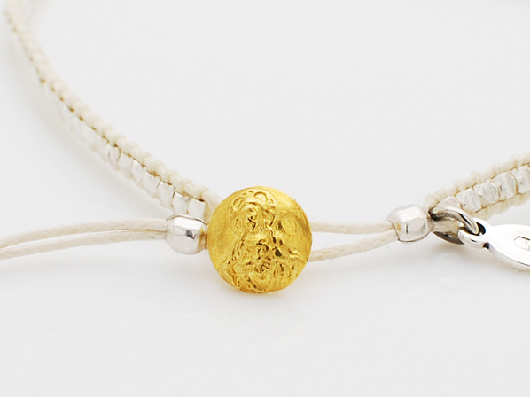 ◆こちらは手作りでシルバー製の極めて小さくカットを施したビーズを隙間なく編込み、留め具にはシルバー製のジーザスメダイコンチョをゴールドコーティングしています。