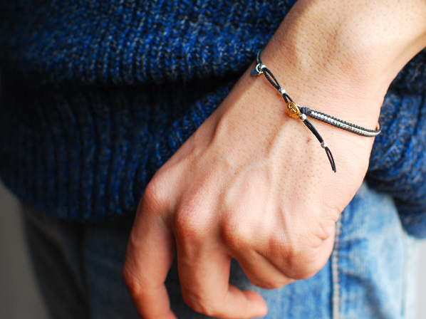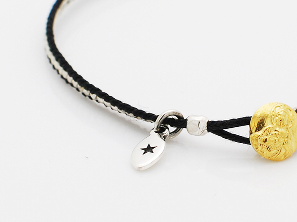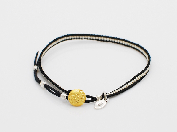 ◆こちらは手作りでシルバー製の極めて小さくカットを施したビーズを隙間なく編込み、留め具にはシルバー製のジーザスメダイコンチョをゴールドコーティングしています。