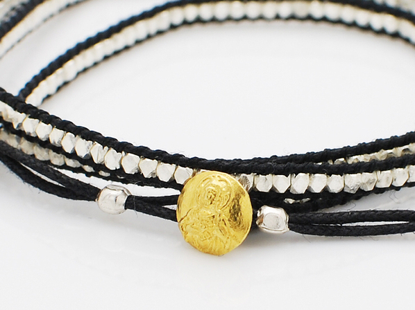 ◆こちらは手作りでシルバー製の極めて小さくカットを施したビーズを隙間なく編込み、留め具にはシルバー製のジーザスメダイコンチョをゴールドコーティングしています。