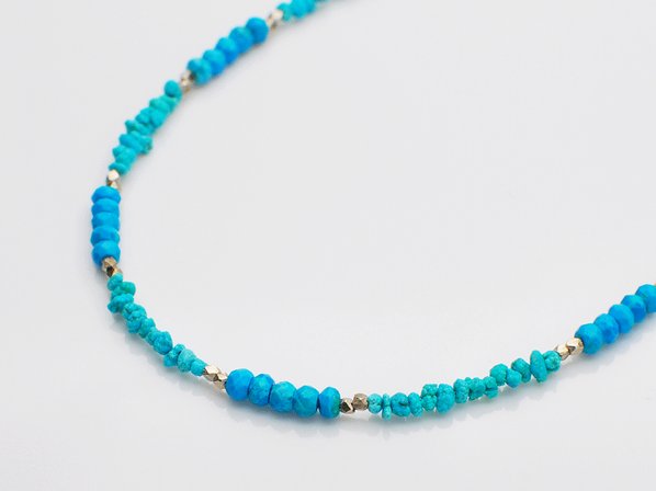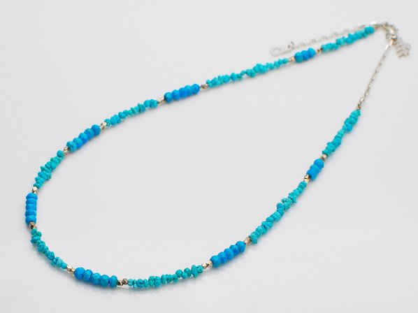 ◆2種類の小粒のターコイズとシルバーを配置した細身のつけやすいネックレスです。