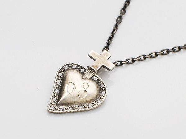 ◆ミラグロとはスペイン語で奇跡を意味する言葉で、古来より心臓の形をした奉納品として金属製品が存在していたという。その心臓をモチーフにアンティークでモダンな要素を取り入れ、ハートの回りにはキュービックジルコニアを施しています。