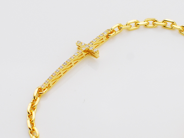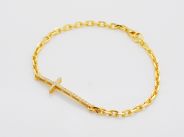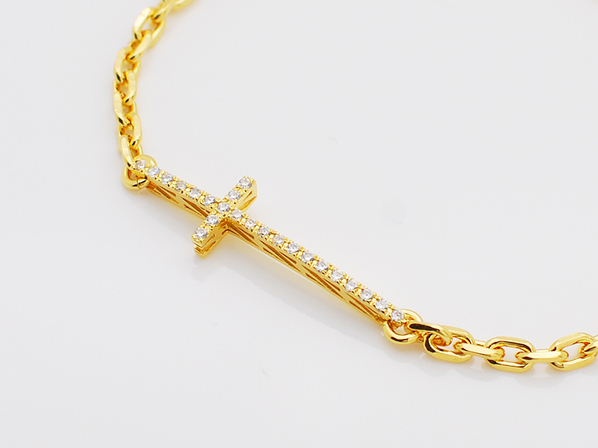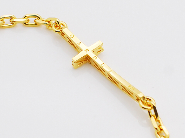 ◆クロスにはキュービックジルコニアを敷き詰め、チェーンと共にゴールドコーティングし上品な輝きで腕元を照らします。
