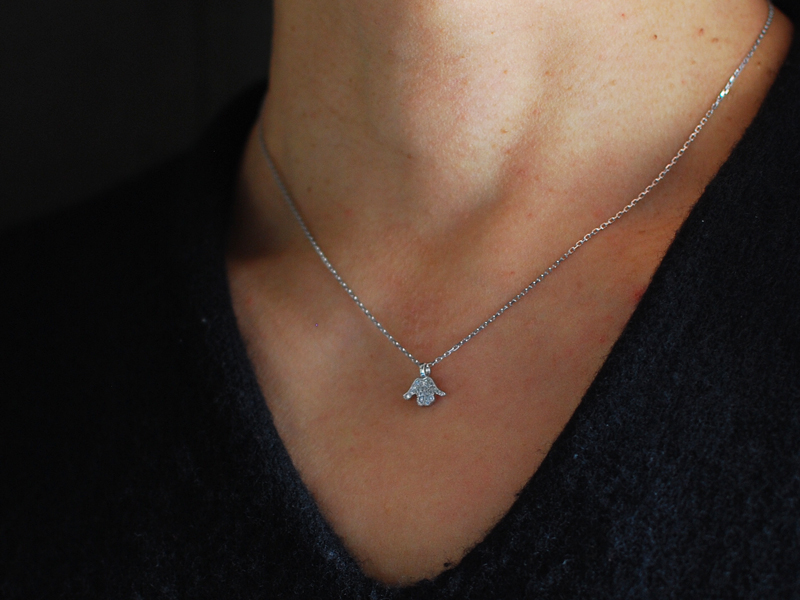 ハンドアミュレット・ネックレス/SV/CZ◆アロハをモチーフにキュービックジルコニアを全面に敷き詰めた、高級感と遊び心が楽しいGARDELお得意のデザインネックレスです。