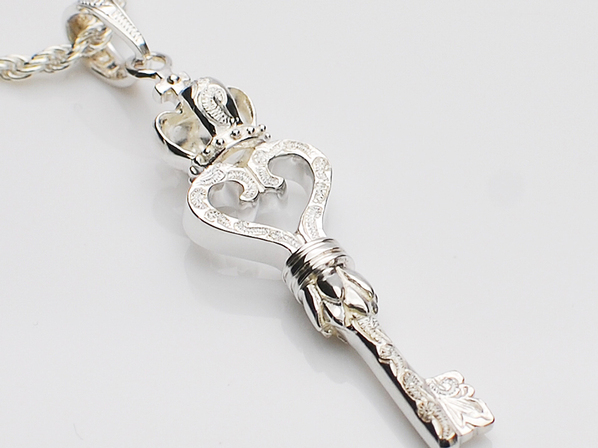 ◆恋愛を象徴するハートに栄誉を意味するクラウンをあしらった”Key”ペンダントで、彫模様には永遠に続く幸せを意味するスクロール(波)が刻まれています。