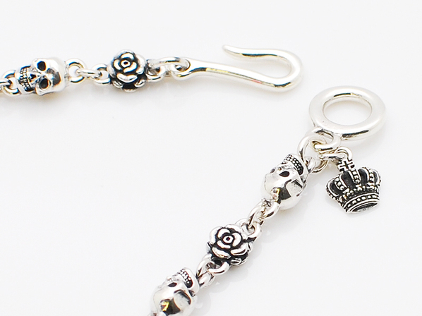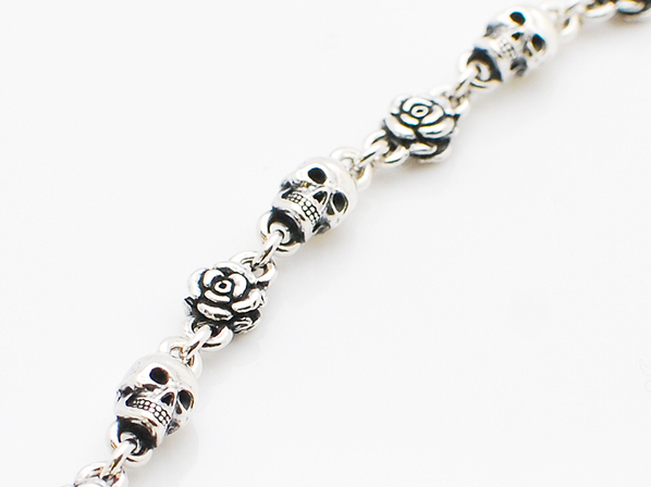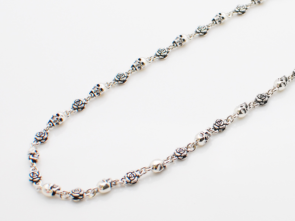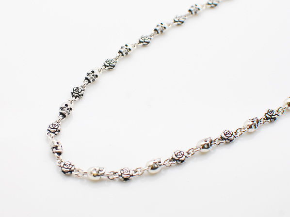◆スカルと薔薇が交互にリンクし、いぶし加工を施した存在感のあるチェーンです。