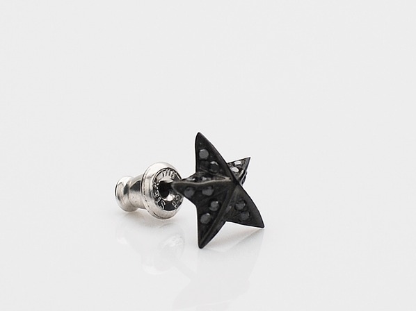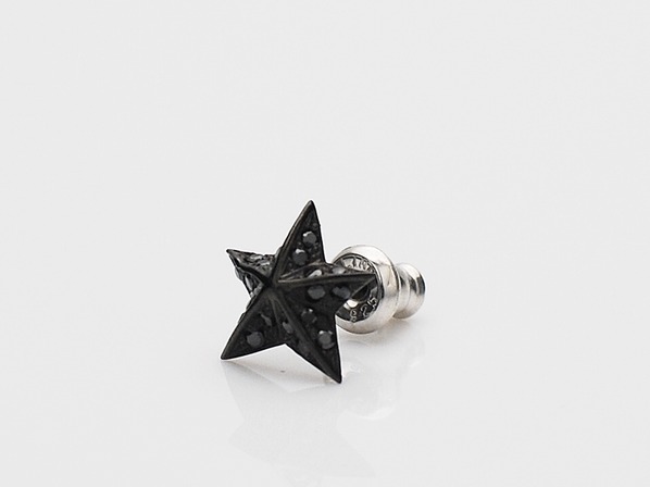 ◆立体的な面構成で作られたスターにブラックキュービックジルコニアをパヴェセッティングしさらにブラックコーティングを施した、『黒艶感』が楽しめるピアスです。
