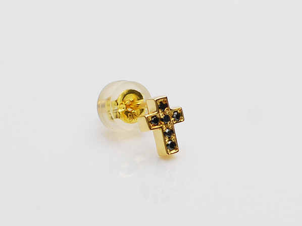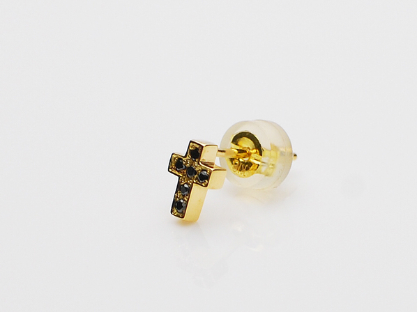 ◆18金イエローゴールドの極小クロスに、ブラックダイヤモンドが6石セッティングされたピアスになります。