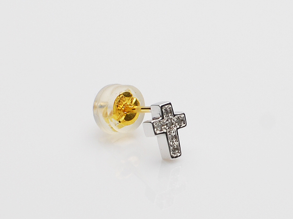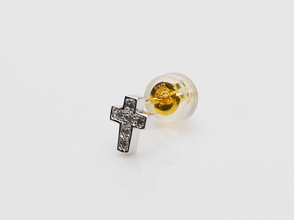 ◆シルバーの極小クロスに、ダイヤモンドが6石セッティングされたピアスになります。