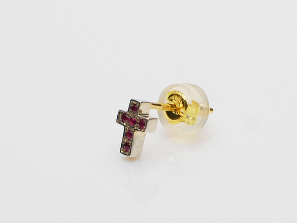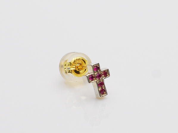 ◆シルバーの極小クロスに、ルビーが6石セッティングされたピアスになります。
