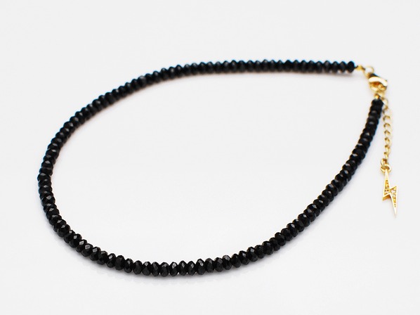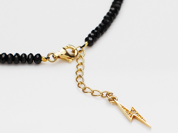 ◆ブラックスピネルを連ねたシンプルで上品なアンクレットで、エンド部分には稲妻のチャームが配された足元に高級感を漂わせるアイテムです。