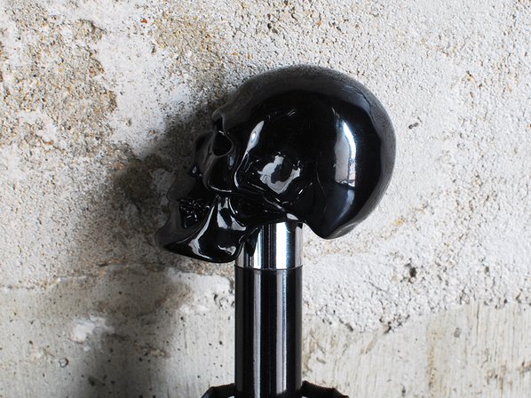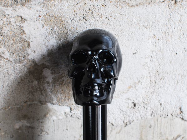 ◆上品な地模様の黒地に、ブラックコーティングのスカルハンドルが引き立ちます。