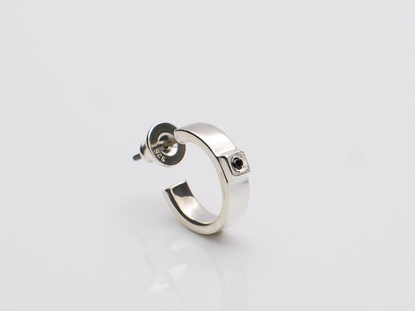◆シンプルなフープ型のピアスにブラックダイヤモンドを1石施した、定番のアイテムです。