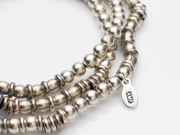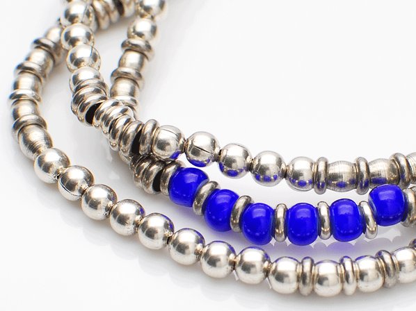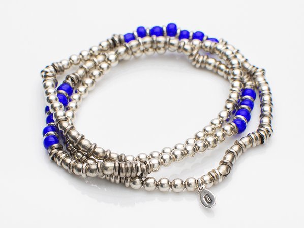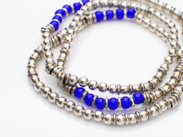 ◆発色のよいネイビーのホワイトハーツとメタルビーズのチョーカーで、3重巻きでブレスレットとしてもお楽しみ頂けます。
