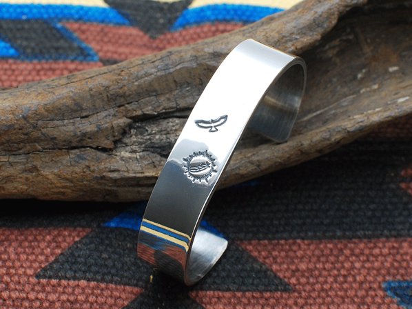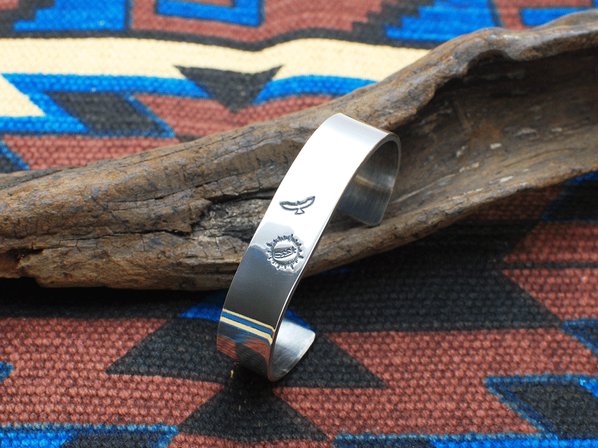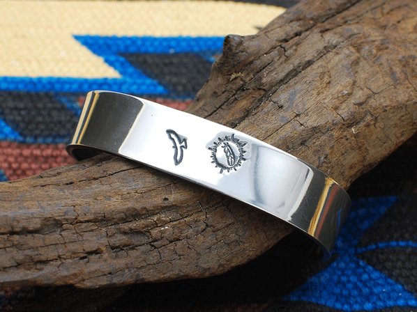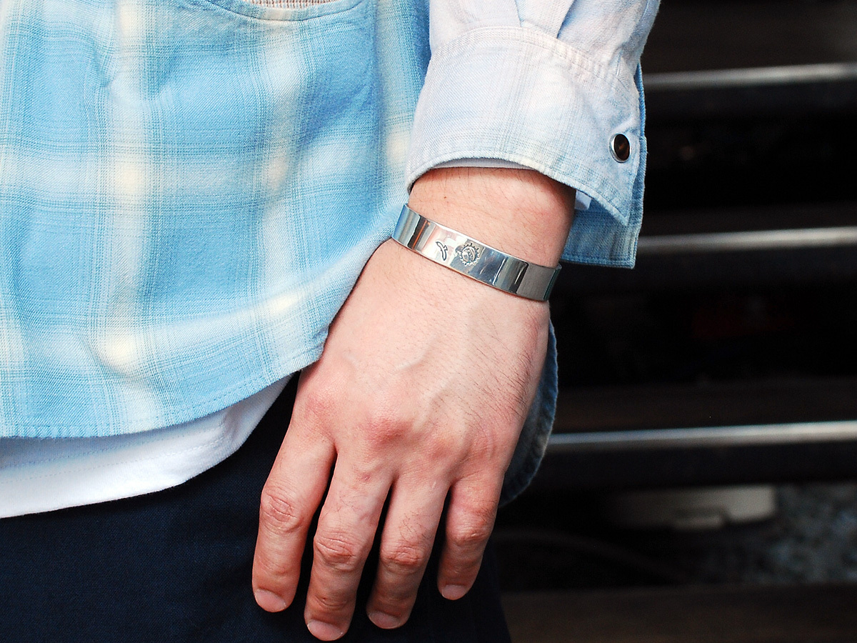 ◆ホークフェザーの刻印をあしらった厚みのあるブレスレットで、シンプルながらも幅広で存在感が味わえる逸品です。