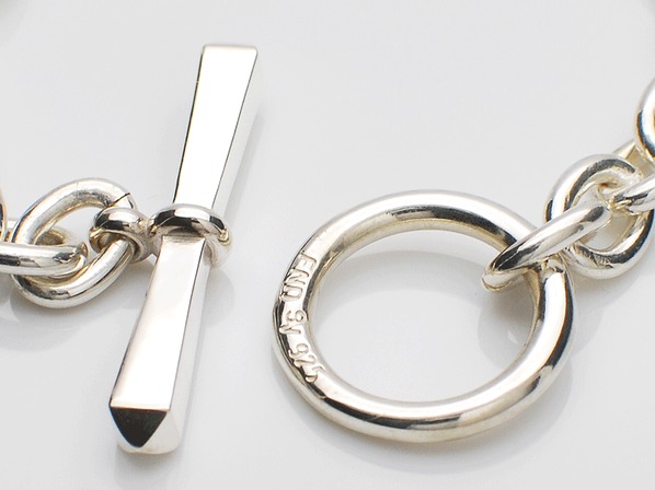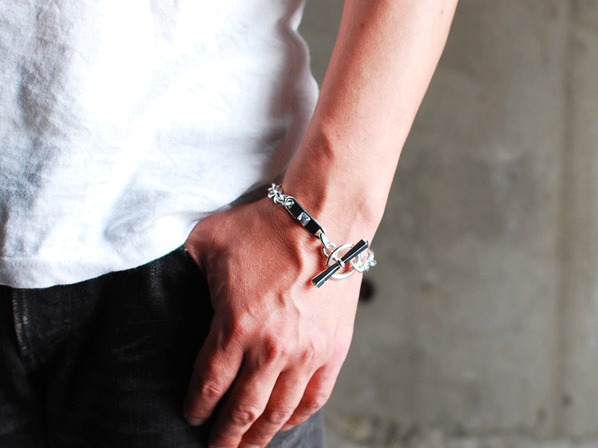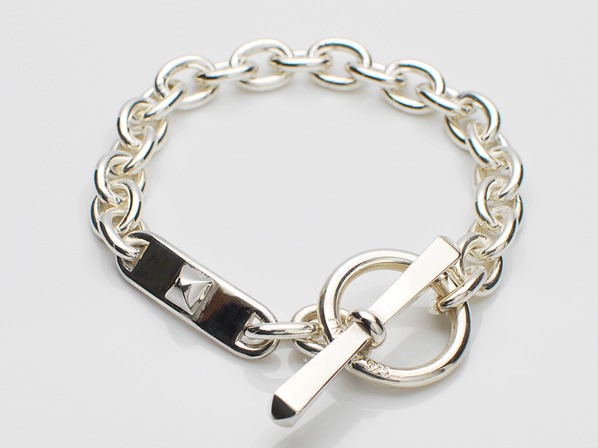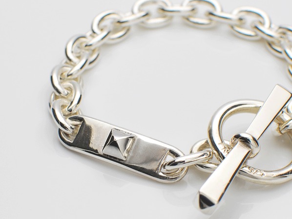 ◆スタッズが施されたIDプレートとジョイント部分が特徴的なブレスレットで、細部に至るまで