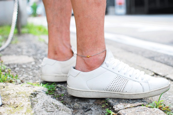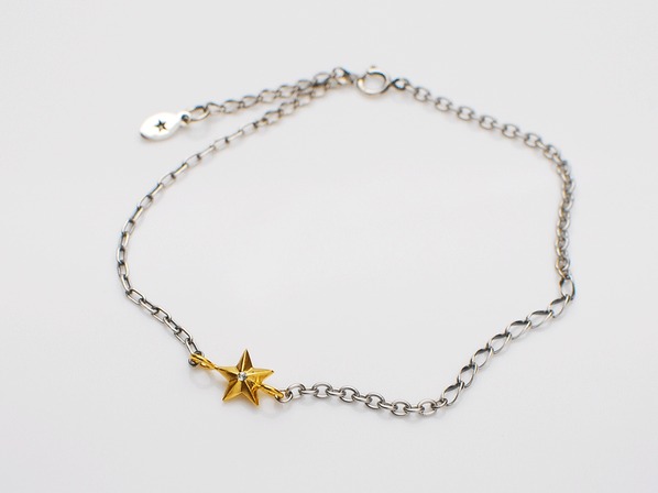 ◆キュービックジルコニアをセンターに配した、ゴールドスターがポイントのクレイジーチェーンアンクレット。