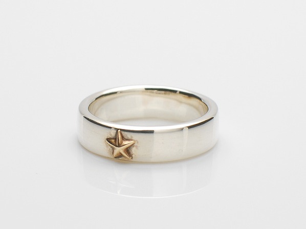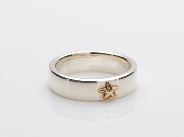 ◆K10イエローゴールドを使用したスターを、フラットな平打ちのリングにセットしたシンプルなリングです。