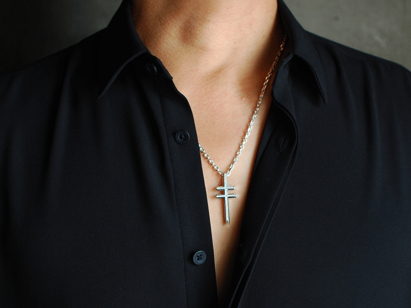 モードな雰囲気にデザインしたクロスペンダントです。