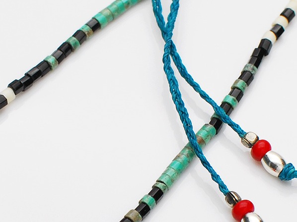 ◆ターコイズ、ガラスビーズ、ホワイトハーツビーズ、ワックスコードと様々な素材で組みあげる!