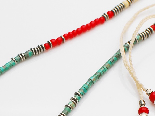 ◆ターコイズ、キャメル、ホワイトハーツビーズ、ワックスコードと様々な素材で組みあげる!