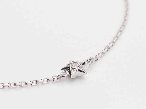 ◆6つの面にキュービックジルコニアをそれぞれ施し、小粒ながらも際立ったエッジ感が高級な佇まいを魅せる”星”のアンクレットです。
