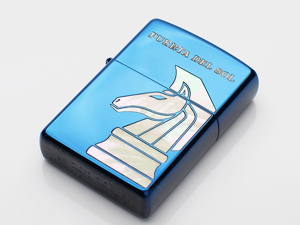 ◆ブルーチタンコーティングが施されたZIPPOボディーに、チェスナイトをシェルでデザインしています。