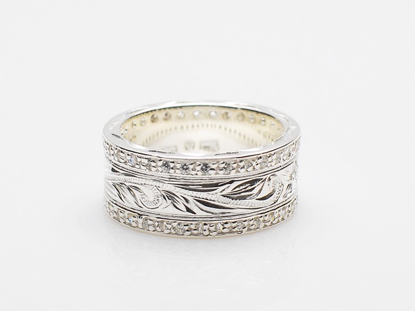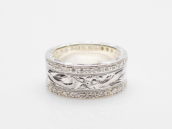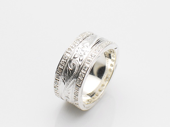 ◆両サイドにジルコニアの石を一周埋め込んだ、高級感漂うリングです。