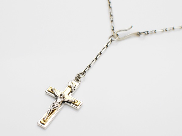 ◆クロス部分にシルバーとブラスを使用した、立体的かつ重厚感のあるネックレスです。