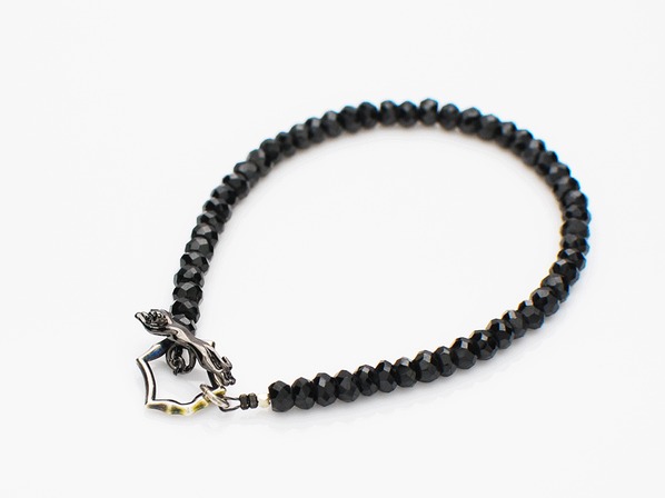 ◆ブラックパンサーとブラックスピネル、そしてシルバーのコントラストが美しい細身のブレスレットです。