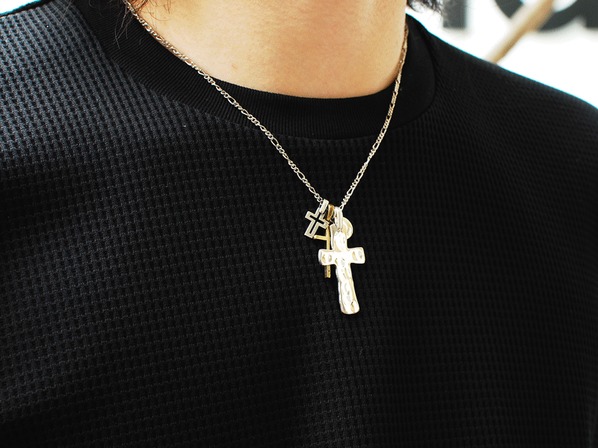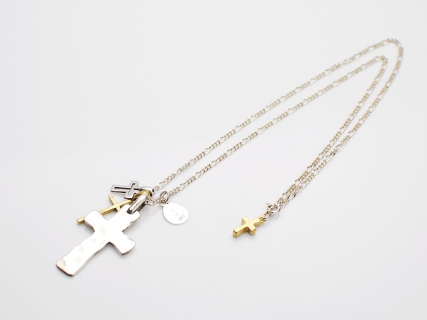◆凹凸が施されたクロスなど、4つのチャームで構成された動きのあるネックレスです。
