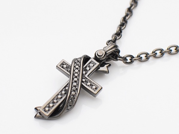 ◆シンプルなクロスに、3D構造のTATOOリボン巻き付けた、奥行きのあるリッチなペンダントです。