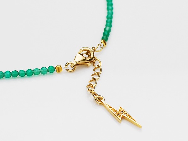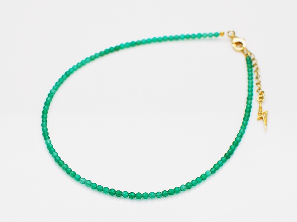 ◆グリーンアゲートを連ねたシンプルかつ上品なアンクレットで、エンド部分には稲妻のチャームが配された足元に高級感を漂わせるアイテムです。