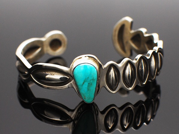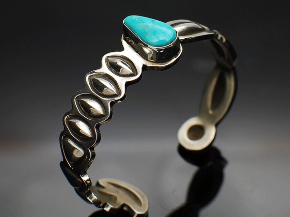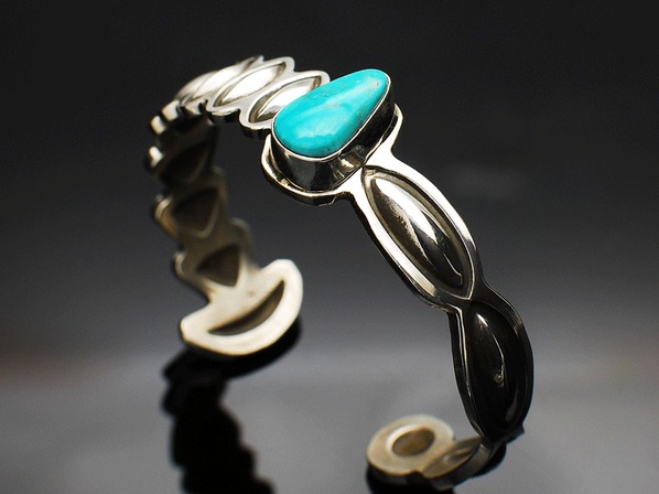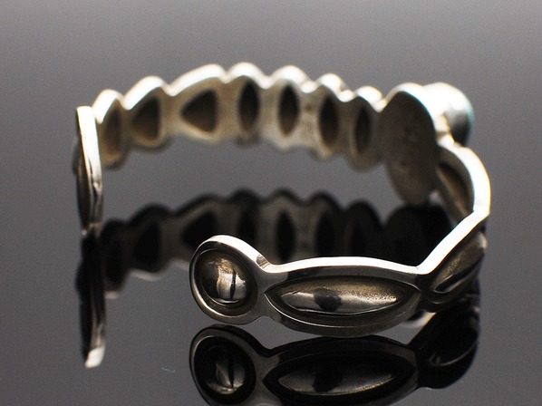 インディアンジュエリーのリボーズ技法(裏からシルバーを叩き出してデザインを作り上げる)でモダンに