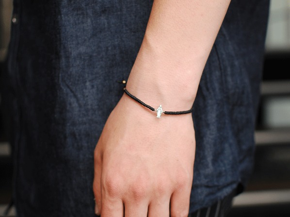 ◆黒いロウ引きしたワックスコードを手編みしたブレスレットで、繊細な彫金作業で作られるシルバー製の