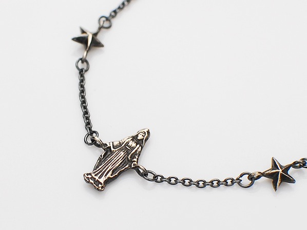◆繊細な彫金作業で作られるシルバー製のチャームと星、黒く燻されたシルバー製のチェーン。
