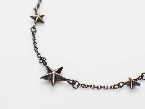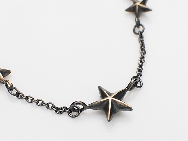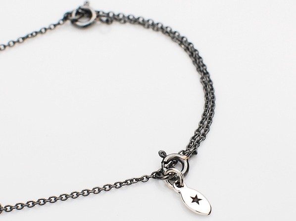 ◆繊細な彫金作業で作られるシルバー製のチャームと星、黒く燻されたシルバー製のチェーン。