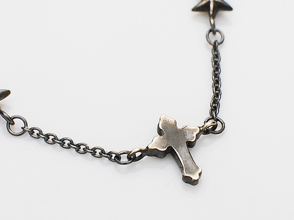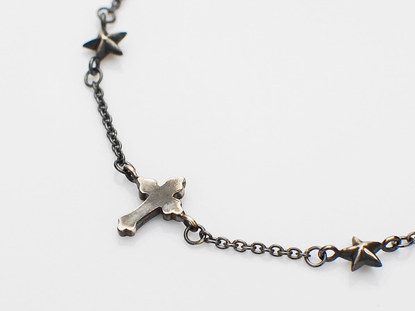 ◆繊細な彫金作業で作られるシルバー製のチャームと星、黒く燻されたシルバー製のチェーン。