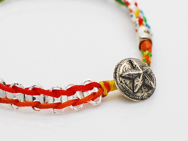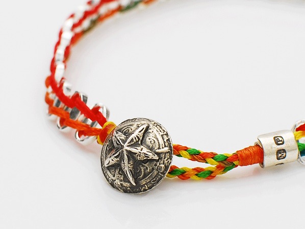 ロウ引きしたワックスコードを編込んだブレスレット。
