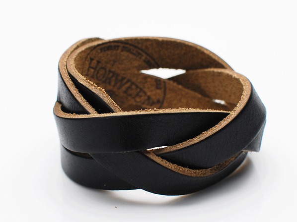 ◆一枚革のホーウィン社製レザー三つ編みブレスレットです。