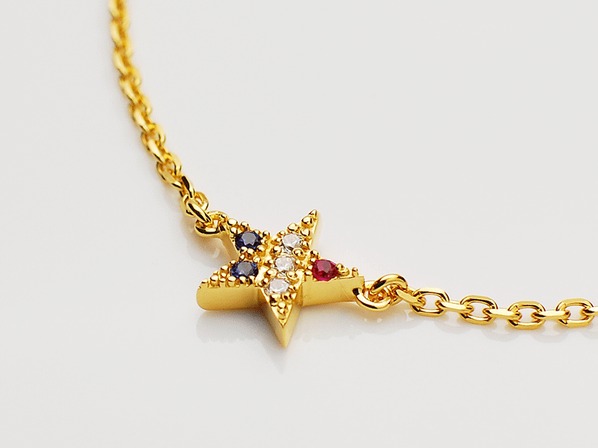 ◆スターに、ジルコニア、シンセティックルビー、シンセティックサファイヤを施し、トリコロールカラー