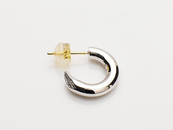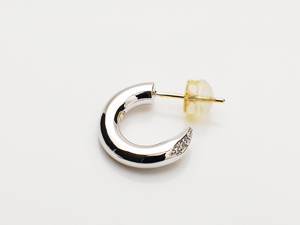 ◆シンプルながらも幅約3mm、直径約14mmのボリューム感のあるピアスで、エンド部分にはクリアーのジルコニアを4石セッティングしています。