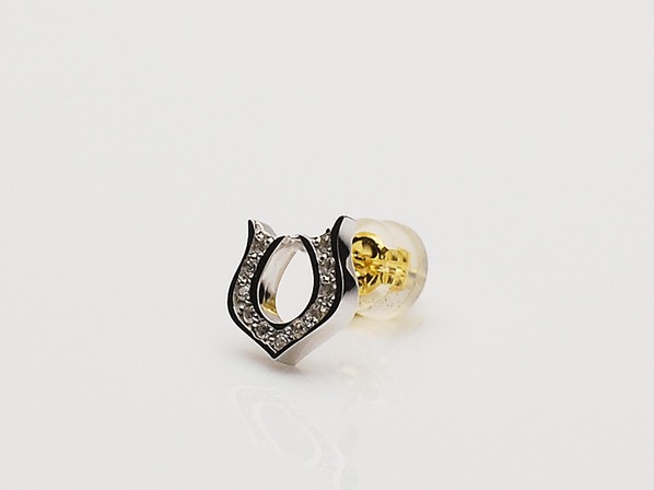 ◆幸運を貯め込むと云われるホースシューをモチーフに、クリアーのジルコニアをセッティングした高級感のある小ぶりのピアスです。