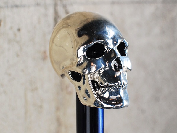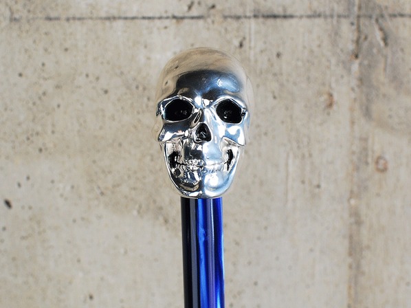 ◆ネイビーカラーのオックスフォード生地にシルバーカラーのスタッヅを4方向に配し、シルバーコーティングのスカルハンドルが引き立つデザイン。
