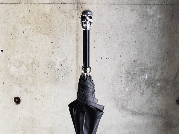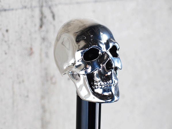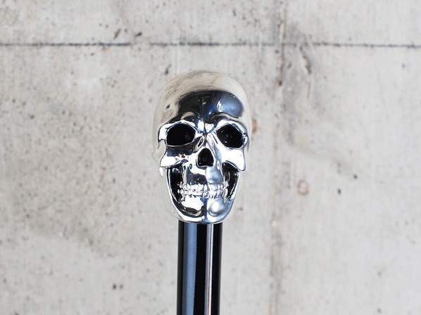 ◆生地はブラックとグレーのシックな迷彩柄で、シルバーコーティングのスカルハンドルが引き立ちます。