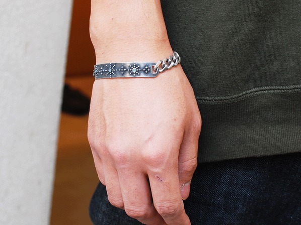 ◆US ARMYの腕につけられるIDブレスレットからインスパイアされたブレスレットで、腕に沿うようにカーブしたプレートにより装着感も高くなっています。