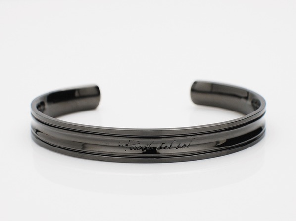 ◆チェスの台座部分をモチーフにした”Pedestal”シリーズのバングルで、ブラックチタンをコーティングしています。