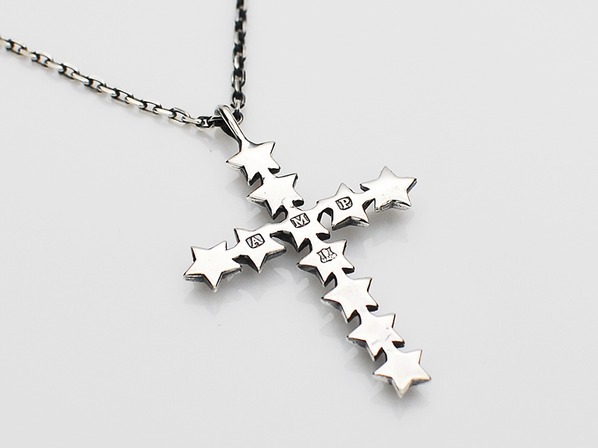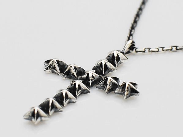 ◆ピラミッドスタッズの様に突起したスタースタッズを連ねたクロスネックレスです。(LARGE)