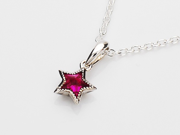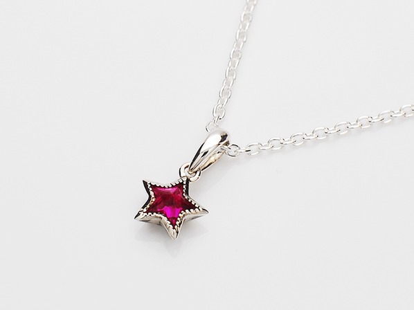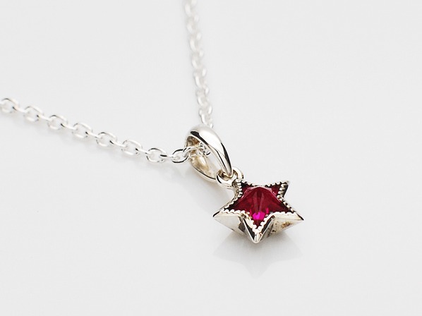 ◆オリジナルカットのシンセティックルビーをセットしたスターモチーフのネックレスです。