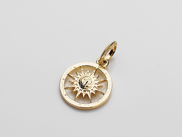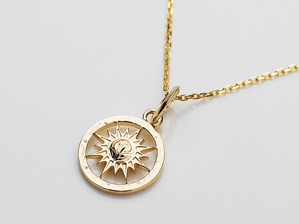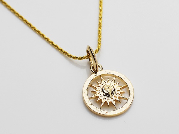 ◆輝かしい未来を明るく照らしてくれるSUN(太陽)をデザインしたペンダントで、彫り模様には永遠に続く幸せを意味するスクロール(波)が刻まれています。